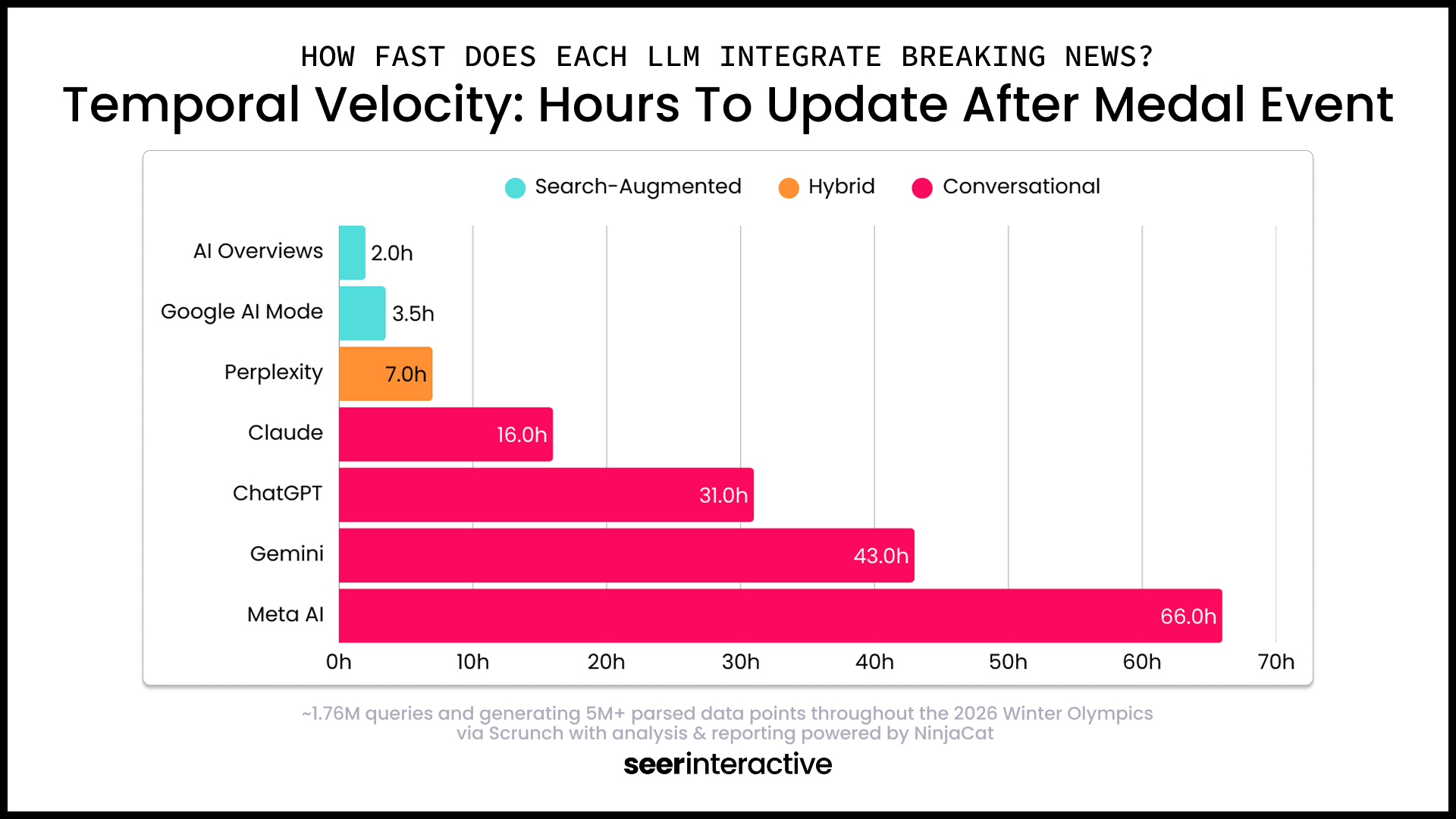 What we're testing: When something changes, how fast do different LLMs change their answers? After a medal event, do they update their response? Cite different sources? Or keep serving yesterday's narrative?