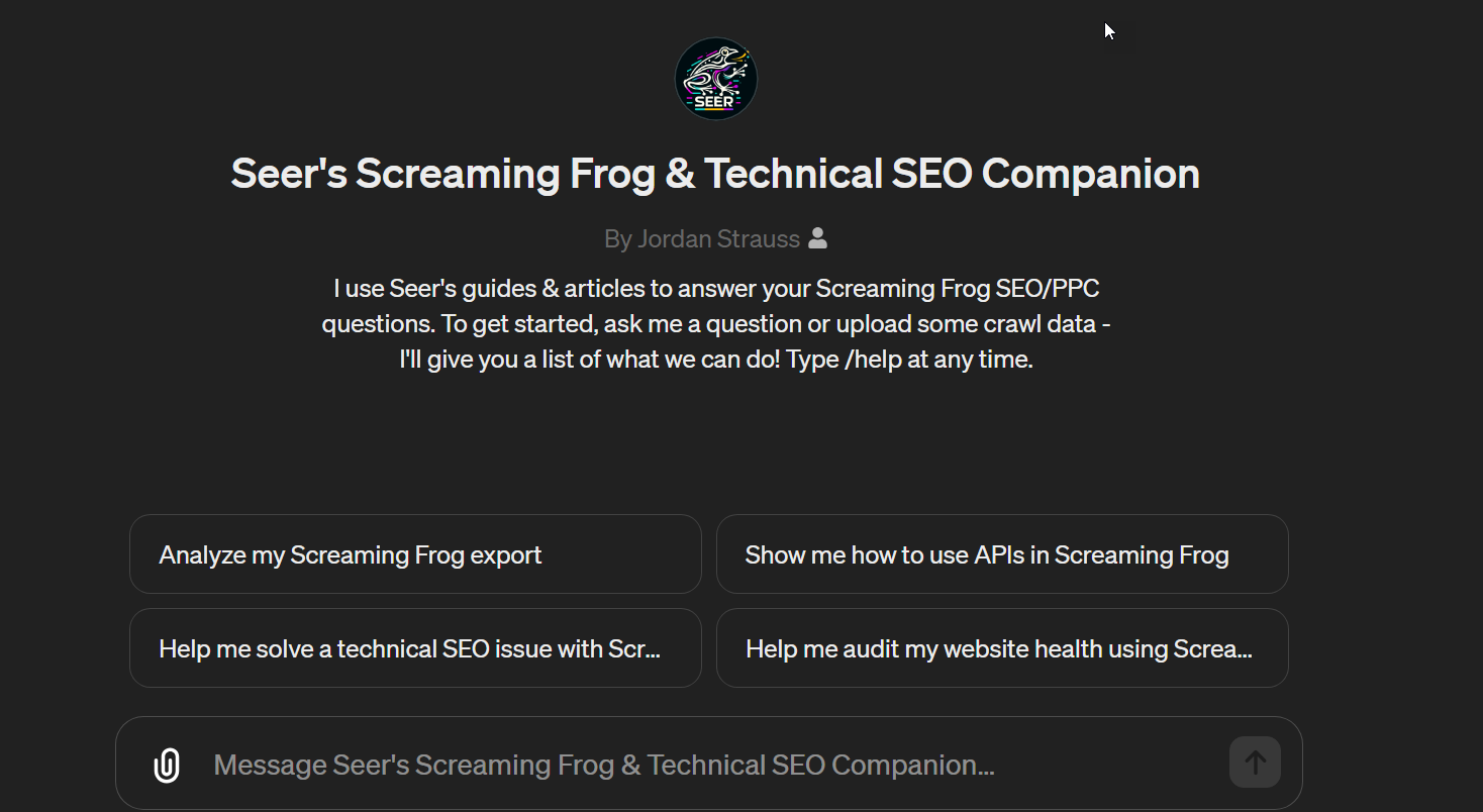 We built this custom GPT for our screaming frog guide you tell me which one is better for your use case the text one or the CustomGPT one? Or both?