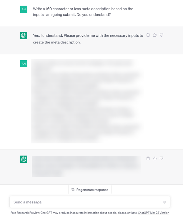 Using ChatGPT To Rewrite Meta Descriptions Results in Decreased Performance