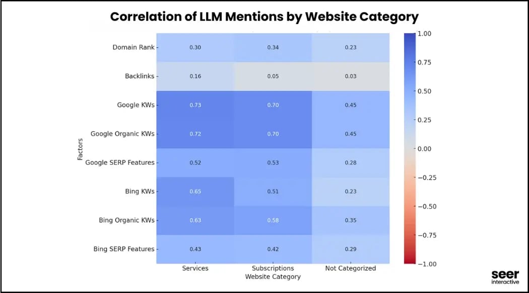 - How it impacts GEO: We looked at hundreds of thousands of data points and found which SEO factors do or don’t influence visibility in LLMs: